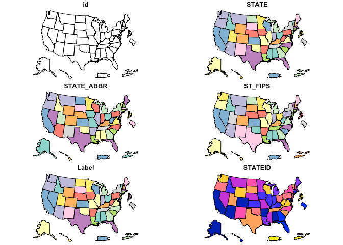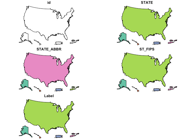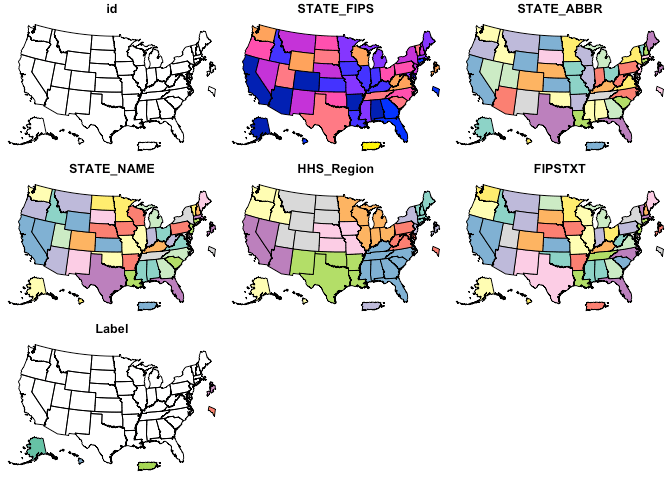 Speaking of maps, the package now has actual maps! A new cdc_basemap() function returns the GeoJSON files that the CDC uses in their web views as sf objects. And, there are tons of maps and multi-labeled features to tie data to: