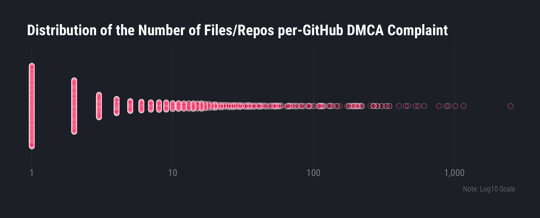 title = "Distribution of the Number of Files/Repos per-GitHub DMCA Complaint",